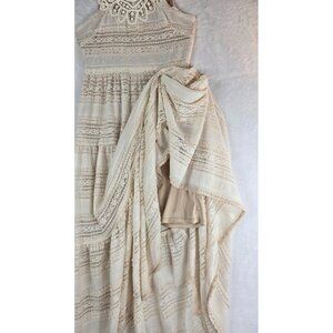 Lace Maxi Dress Cream Sleeveless Tiered 4P Eliza J Cottage Victorian Boho Party