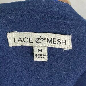 Lace & Mesh Girls Fit Flare Dress Blue Purple Floral Pleated Spaghetti Strap M
