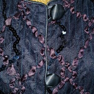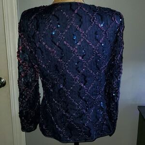 Navy sequined and purple ribbon embellished jacket/ shirt / blazer pair with jeans a skirt shorts very versatile and beautiful color fully lined