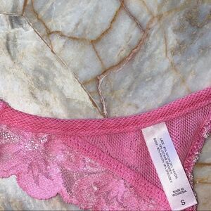 Lace Mesh V-String Thong Panty Ruffle Pink Floral vintage y2k
