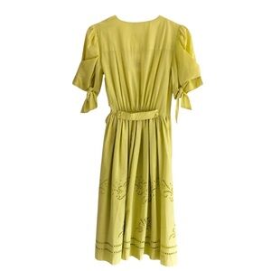 Lace Midi V-Neck Dress Yellow Cotton Small NWT