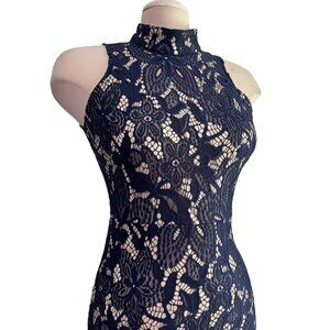 Lace Mock Neck Pencil Dress Fisoul Blue & Cream Sz Small Womens Sleeveless