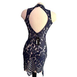 This is a Brand New and very Elegant Fisoul Blue & Cream Lace Bodycon Dress.
