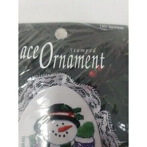 Lace Ornament Kits Stamped VTG 1990s Designs for the Needle Church Snowman NOS