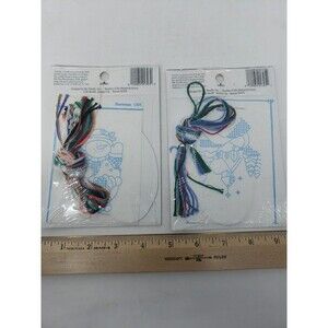 The Lace Ornament Kits by Designs for the Needle from the 1990s offer a nostalgic touch to your holiday decorations. These cross stitch kits come with stamped vintage designs featuring a snowman and Church theme, perfect for adding a festive touch to your home. Each kit includes everything you need such as needle, fabric, and thread, making it easy to create beautiful lace ornaments to cherish for years to come. NOS. Factory sealed. Lot of 2. See photos for condition and wear. Great Bundle Item!
