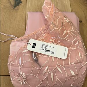 Lace Overlay Bodycon Peplum Hem Midi Dress in Pink