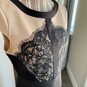 Lace Overlay Cap Sleeve Dress Size: 8 Color: Taupe/black