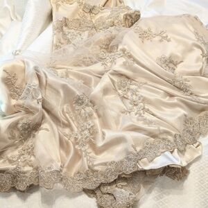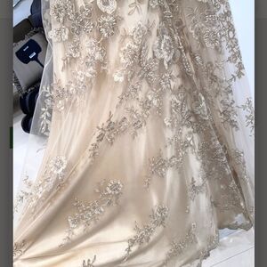 This stunning dress is handmade and has been gently worn. It shows mild signs of wear, including some dirt on hemline.
