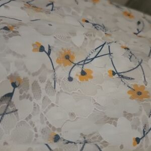 NWT J Lo wore a very similar dess on her honeymoon. White lace with yellow flowrts. subtle see through bodice. empire waist.