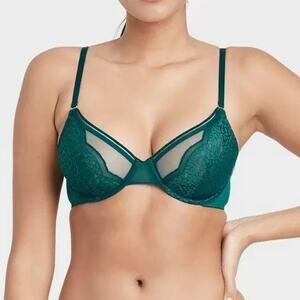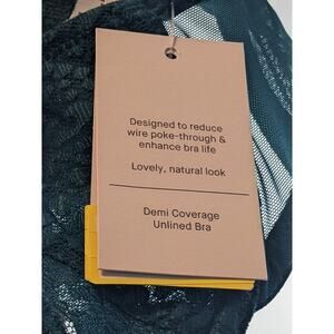 Lace Overlay Unlined Bra Auden 32B Green Underwire Demi Coverage Semi Opaque
