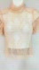 Lace Puff Sleeves Turtle Neck Shoulder Pads Beige Pink Sheer Top Blouse