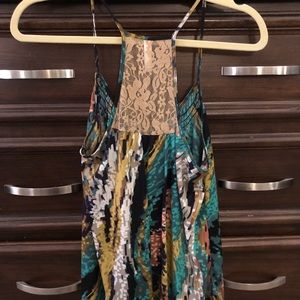 Racer Back Tank. Black lace details on the front. Beige Lace detail on the back. Multi-color Print. Like New.