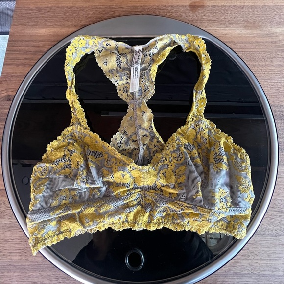 Embrace comfort and style with this lace racerback bralette. The vibrant yellow hue adds a pop of color to your intimates collection. Perfect for everyday wear.