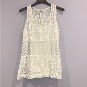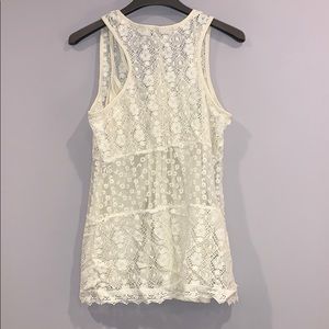 Lace shell with under tank. Racer back, under tank is fitted and lace shell is looser.