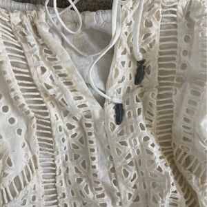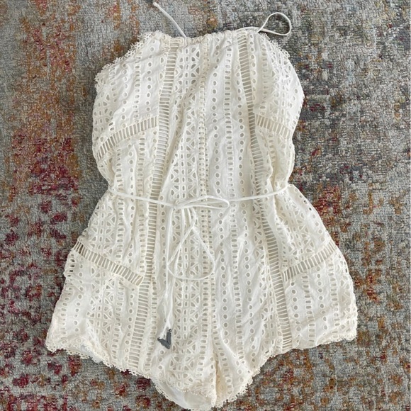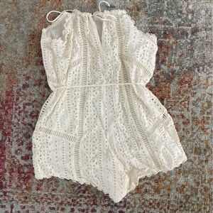 Check out this stunning Boutique Lace Romper! It features a high neck with feather-tipped strings and a waist tie, making it perfect for a beachy bohemian look. Plus, it's nicely lined for extra comfort. You'll love the effortless style and elegance of this romper!