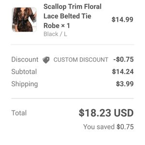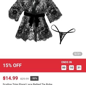 Comes w a ribbon for a belt and a thong. Just wanting to get some cash back so I can buy a bigger size.