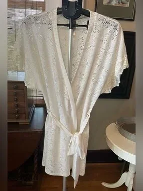 In Bloom by Jonquil woman’s off white lace robe size xl. In good preowned condition as seen in photos.