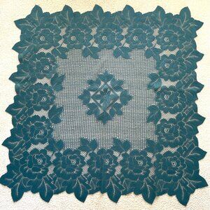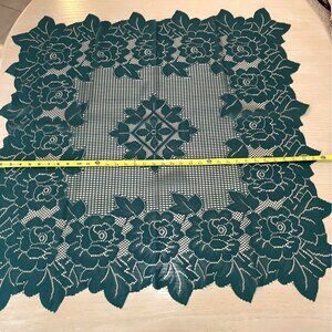 Lace Rose Flower Floral Green Tablecloth Holiday Party Open Weave Cutout Square