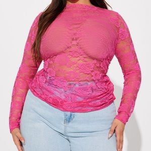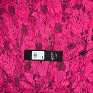 Hot pink lace top, so cute and has some stretch new with tags. Ruched sides and long