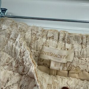 Charming lace skorts with layered ruffles. Soft cream hue. Ideal for a chic look.