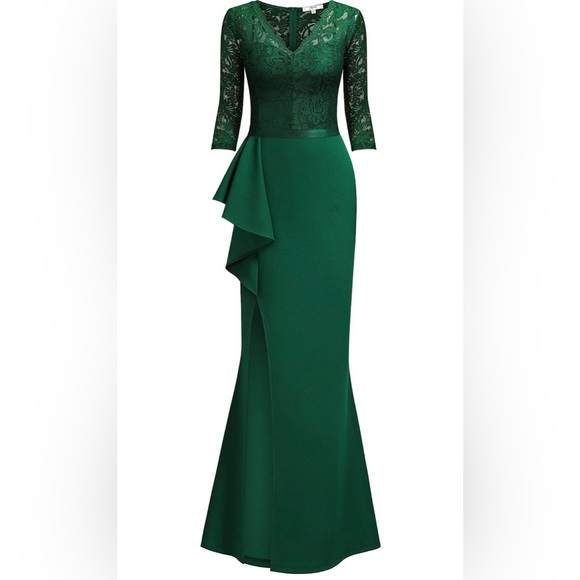 Floral Lace Ruffle Half Sleeve Evening Party Formal Long Dress