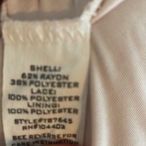 Ruffle lace detailing. MINE brand size large. May fit a medium as well. See measurements below to make sure it will fit. Elastic at waist. Excellent gently loved condition. Lined. Would be great for everyday, travel, vacation, cruise and beyond.