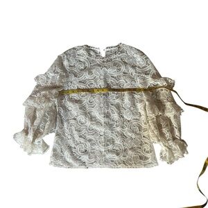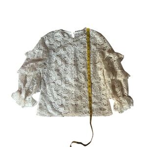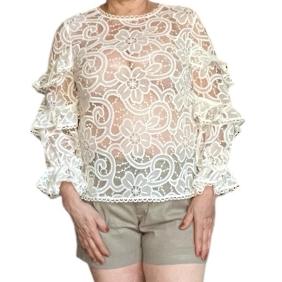 Elegant lace top with ruffle sleeves. Perfect for a chic look.