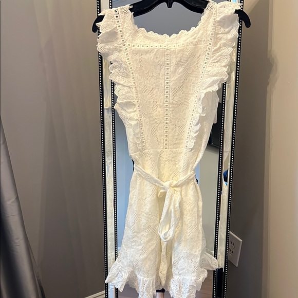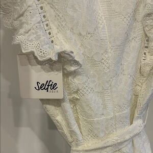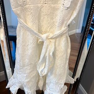 Elegant white lace dress with ruffle details. Perfect for special occasions.