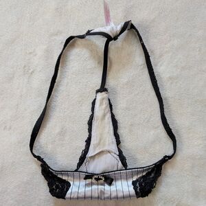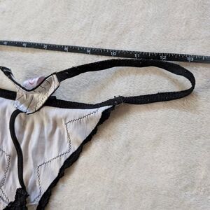Lace Satin Bow G-String Thong Panties Women's Large Pink Black Sparkly Y2K
