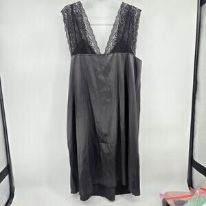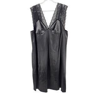 Black Lace Satin Slip Dress Size 3XL Y2K Lingerie 90s Minimalist Coquette Feminine Dark