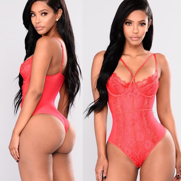 Lace Scalloped Front Straps Teddy - Red