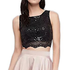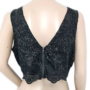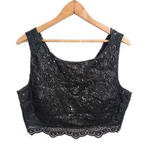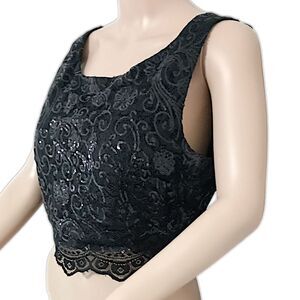 Lace Sequin Cropped Top Sz 13 L Black Romantic Witchy Goth Whimsigoth Sexy Bling. Condition is pre-owned and EXCELLENT condition. No rips, tears, holes or discolorations. PLEASE SEE MEASUREMENTS!