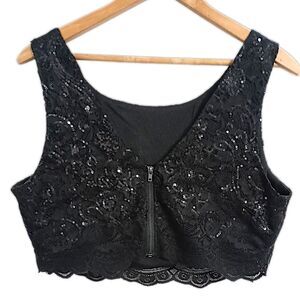 Lace Sequin Cropped Top Sz 13 L Black Romantic Witchy Goth Whimsigoth Sexy Bling