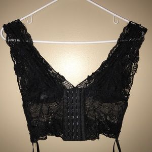 Comfortable Lace and sequin blouse worn twice. The back is fastened to fit with corset hooks & eyes. Size medium but can fit small
