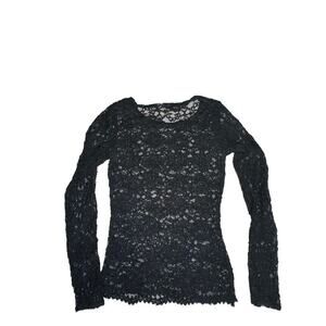 Lace Sheer Black Long Sleeve Pull over top Small 90s Y2K witchy Goth whimsygoth