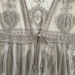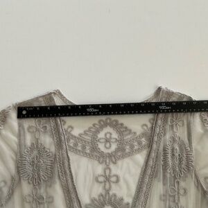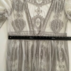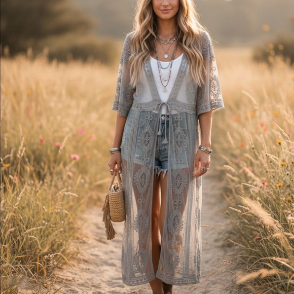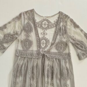 Lace Sheer Kimono Duster OS Gray Boho Hippie Festival Dainty Ethereal Fairycore
