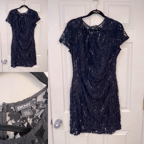 Stretchy lace black shell with great ruching at the waist. Can be worn over a full slip if you have one or over a bra/tank and bike shorts or maybe a leather pencil skirt if you’re going for an edgier vibe.