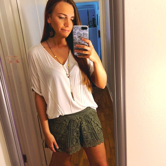 Blue Rain brand lace shorts. Color is a hunter green. No pockets. Stretch band waist. Perfect for summer! Size medium.