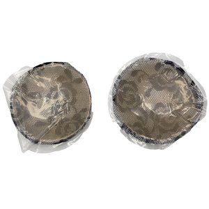 Self adhesive silicone circle shaped nipple covers with lace overlay. 1 pair. Boxed item. Measure about 2-1/2" wide. Black. New in package. Silicone.