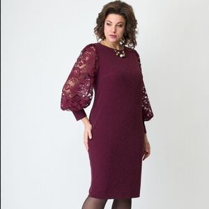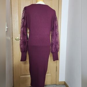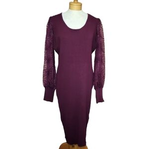 Lace Sleeve Ribbed Midi Dress Size XL - Wine Fall / winter plus size