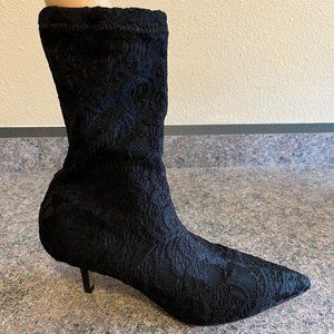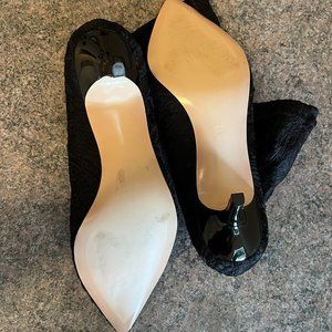 Sock-style pumps / Pointed toes and patent heels. Satin lining, faux leather insoles, and rubber soles. Heel height 2 1/4 in.