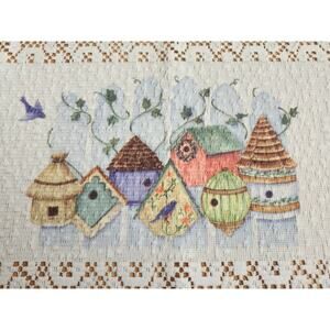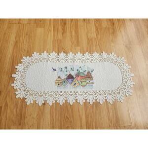Lace Table Runner Birdhouses Spring Cottage 36.5x14 White Doily Decor Coquette