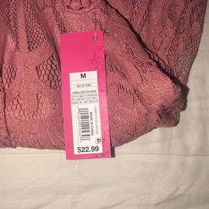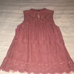 NWT beautiful lace tank with a fabric layer underneath. It has a keyhole button closure in the back and is a dusty rose color. Comes from a smoke and pet free home.