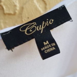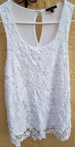 White tank with lace layer in front. There are 2 small holes behind label from tags.
