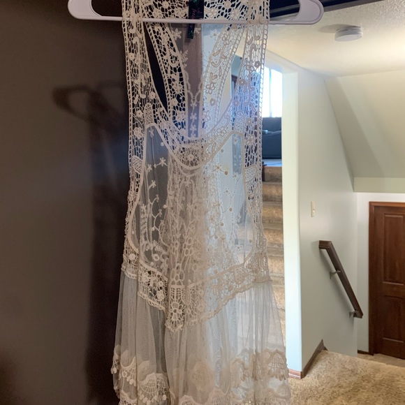 Long lace tank. Cream color. Best styled with bralette or tank. Good condition.