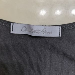 Black lace Tank top with pink underlay. Built in bra cups and flattering rouching design. Charlotte Russe, size medium.