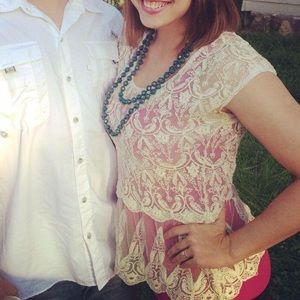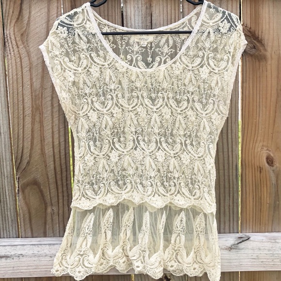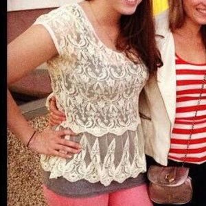 Drop waist fit, very flattering. Beautiful lace. Pair with a tank top or bandeau underneath, looks very cute with jeggings or skinny jeans! Measurements: 21” bust; 26” length | NO TRADES, NO HOLDS, TRANSACTIONS THROUGH POSHMARK ONLY & all negotiations through the offer button, please ❤️