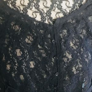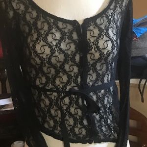 Lacey top with front buttons. Very fun top wear with a camisole or with a fun color bra. Make me an offer!