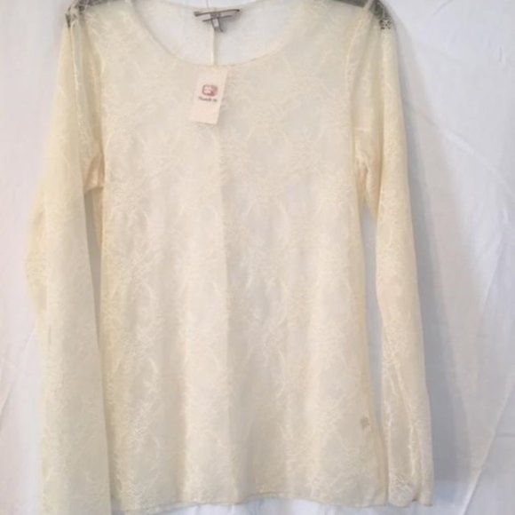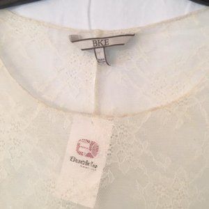 This gorgeous lace see through top is by BKE and new never worn with tags still attached. It is a size L and stretchy, so I am guessing a size 10-12. NEVER worn.