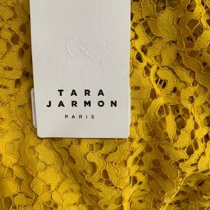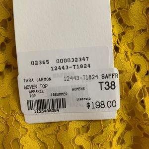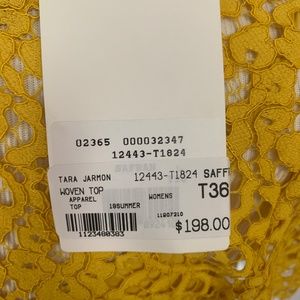 Mustard color - lace top. Build in top underneath sheer lace. Great transition fall piece. Could be paired with skirt, jeans and or dress pants.